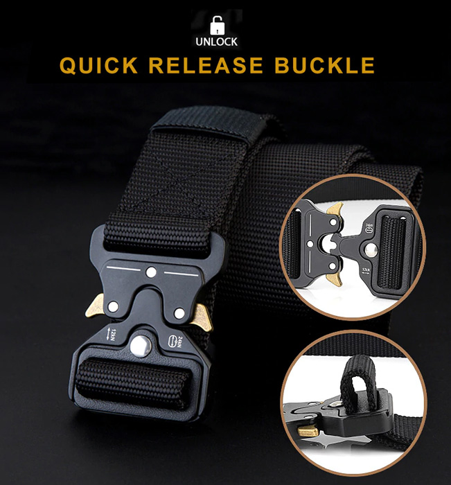 Ζώνη στρατιωτικού τύπου, εξαιρετικής αντοχής με μεταλλική πόρπη ταχείας απασφάλισης.